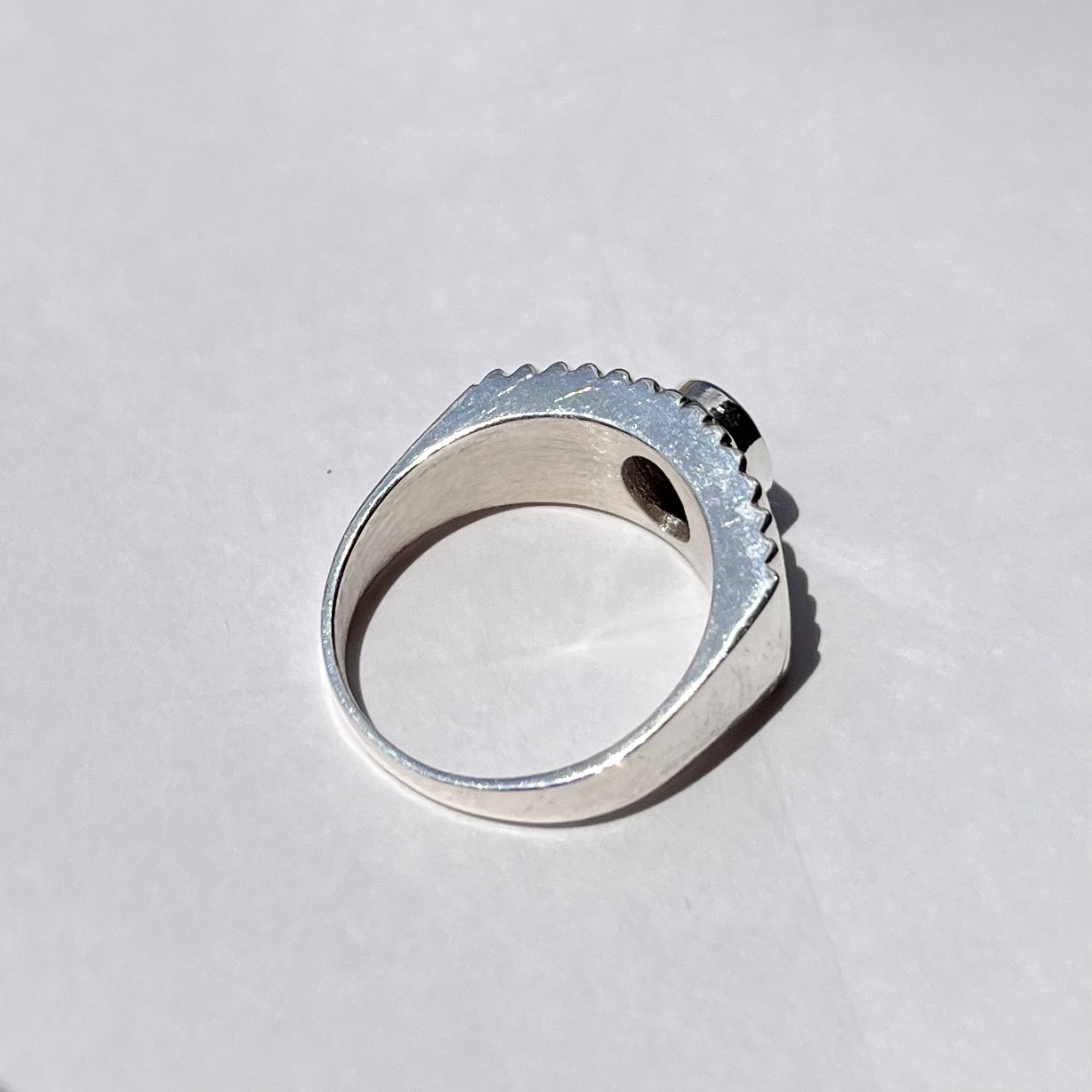 Hand carved and cast silver band with 7 x 9 mm amethyst
