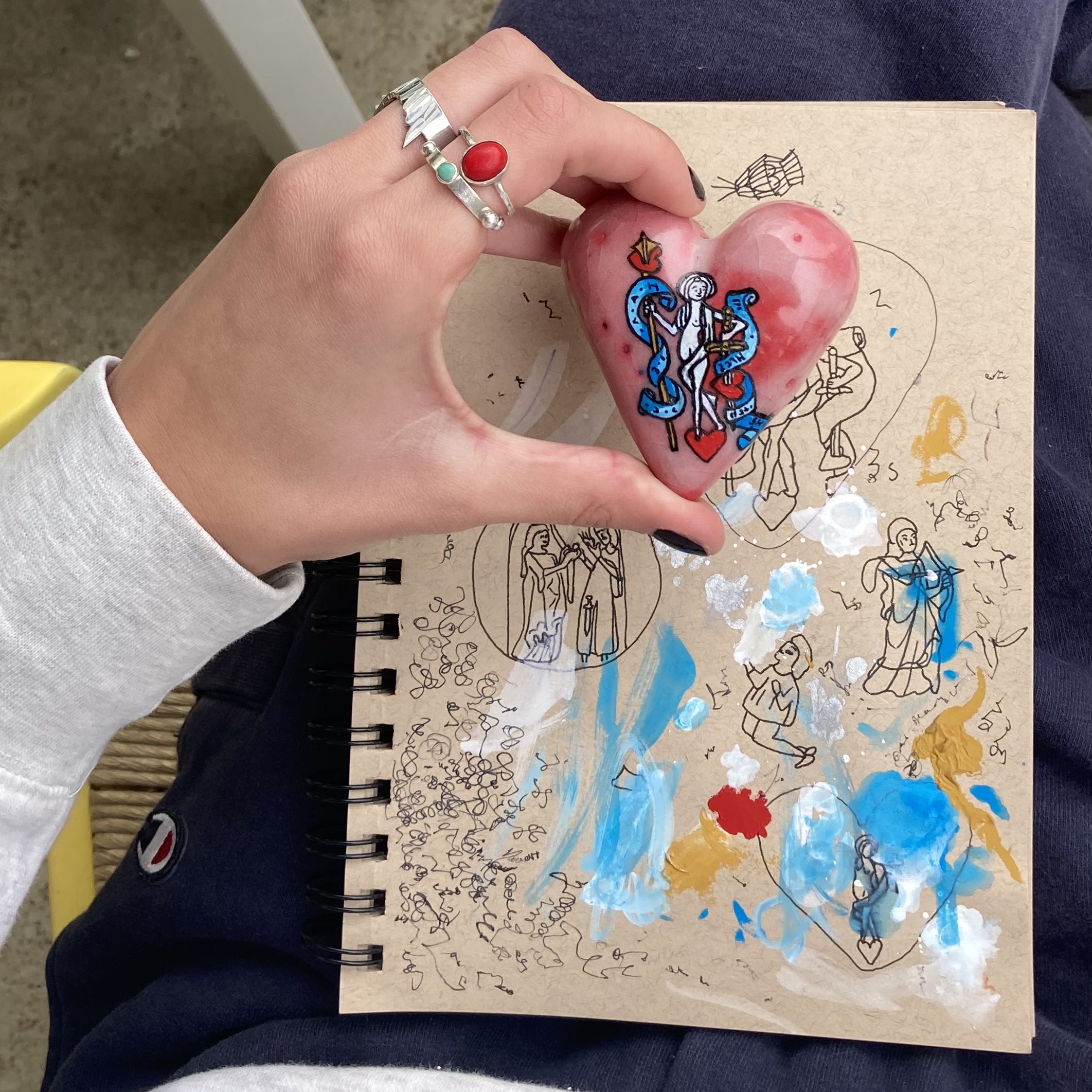 Glazed ceramic heart with acrylic paint