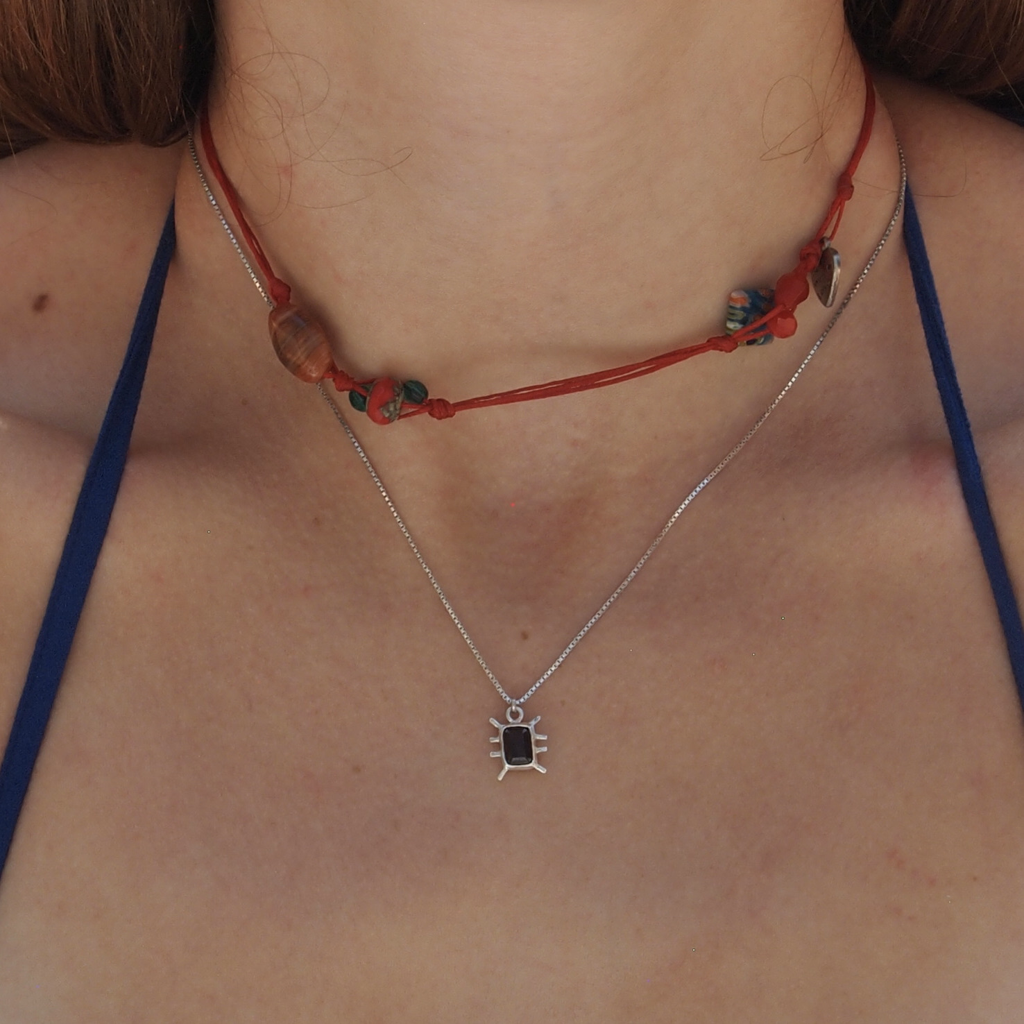 Silver charm with 5 x 7 mm garnet and 8 spider legs