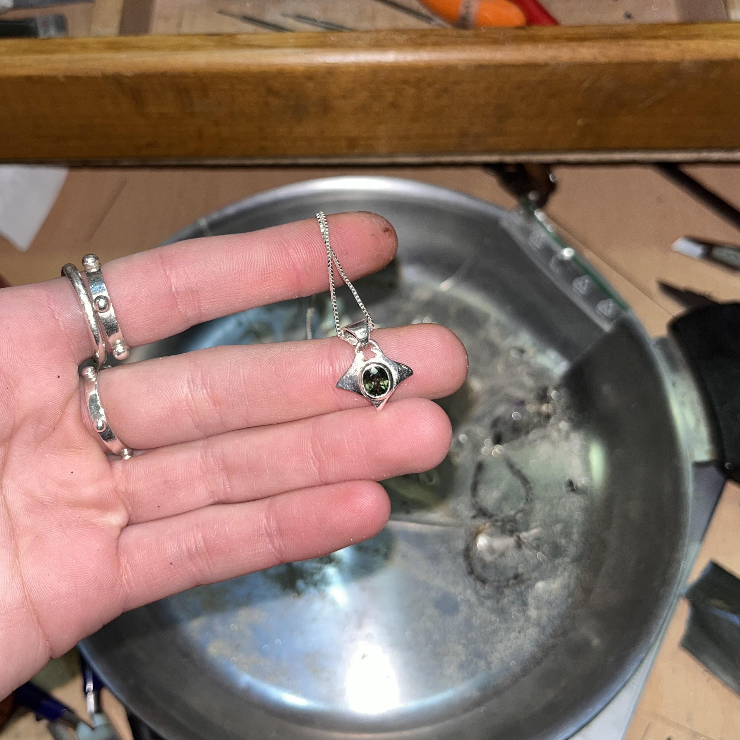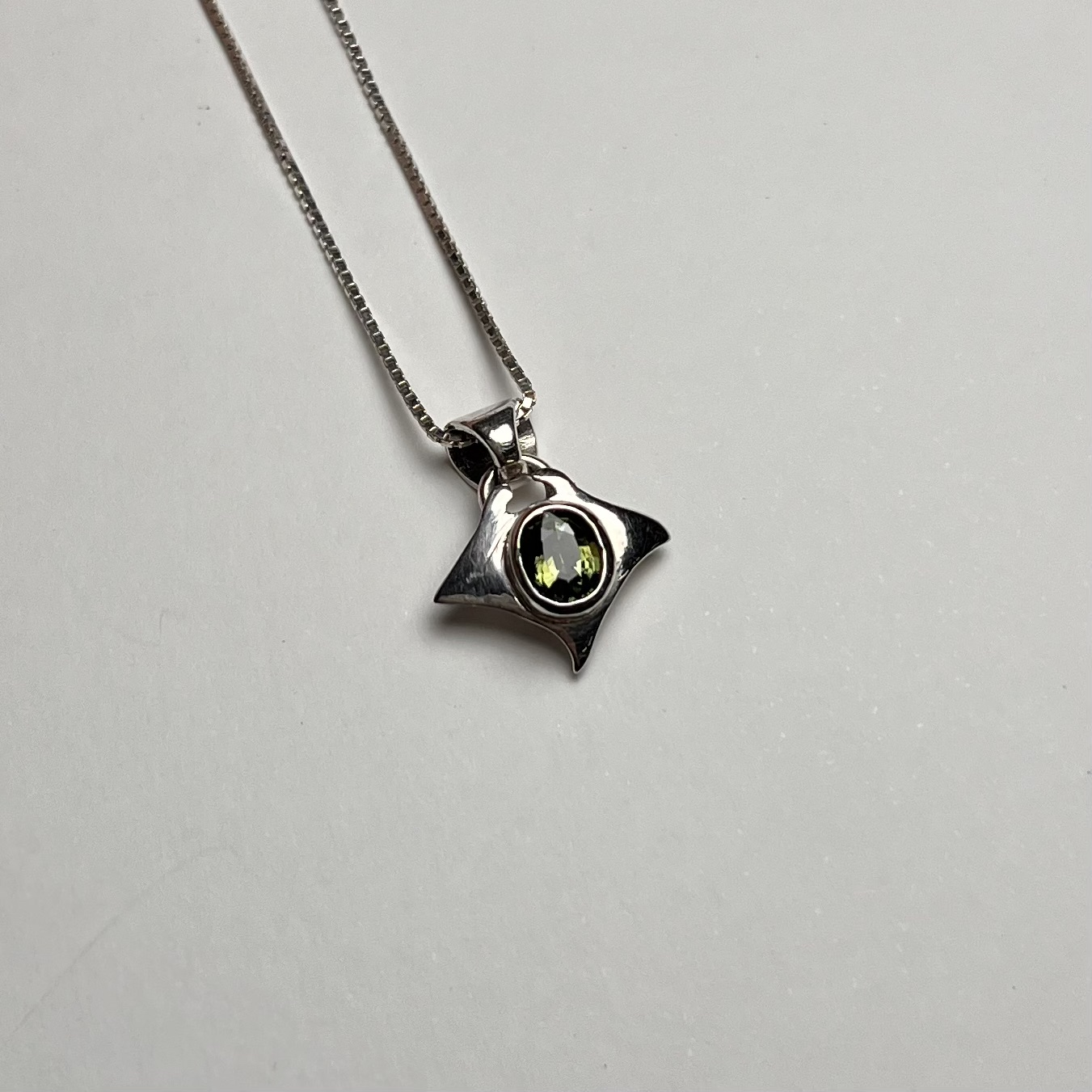 Silver charm with 6 mm green sapphire